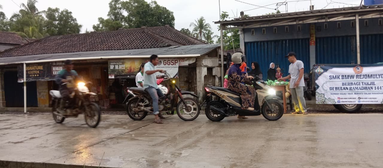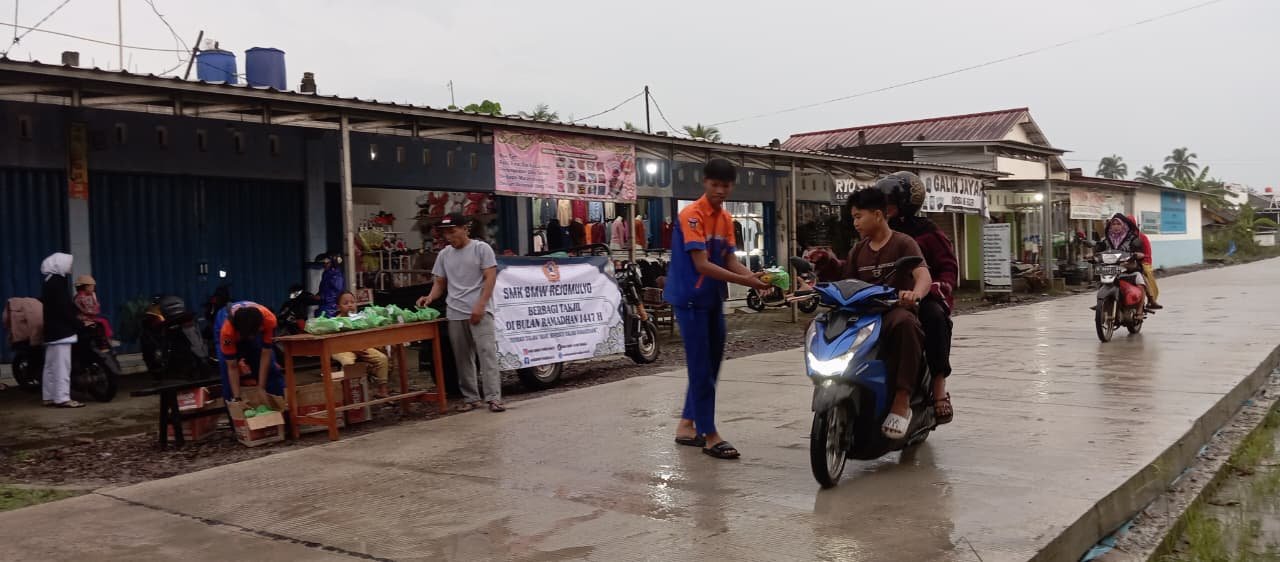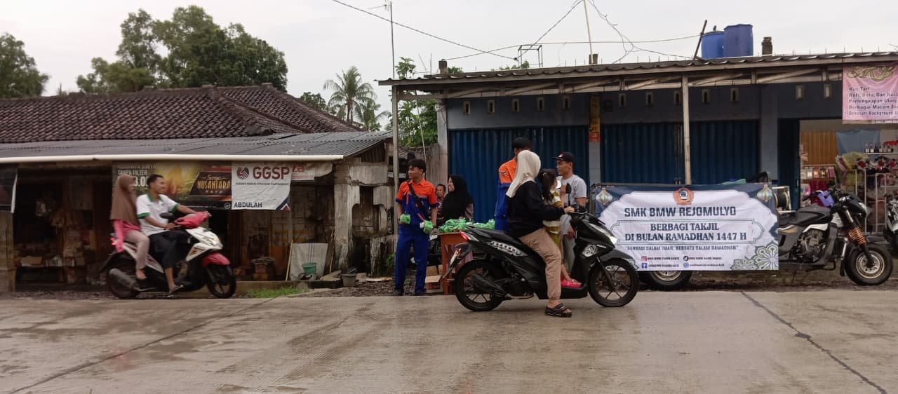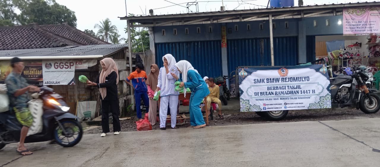 KEGIATAN BERBAGI TAKJIL OLEH SISWA DAN SISWI SMK BMW REJOMULYO DALAM BULAN SUCI RAMADHAN 1447 H TAHUN 2026 M